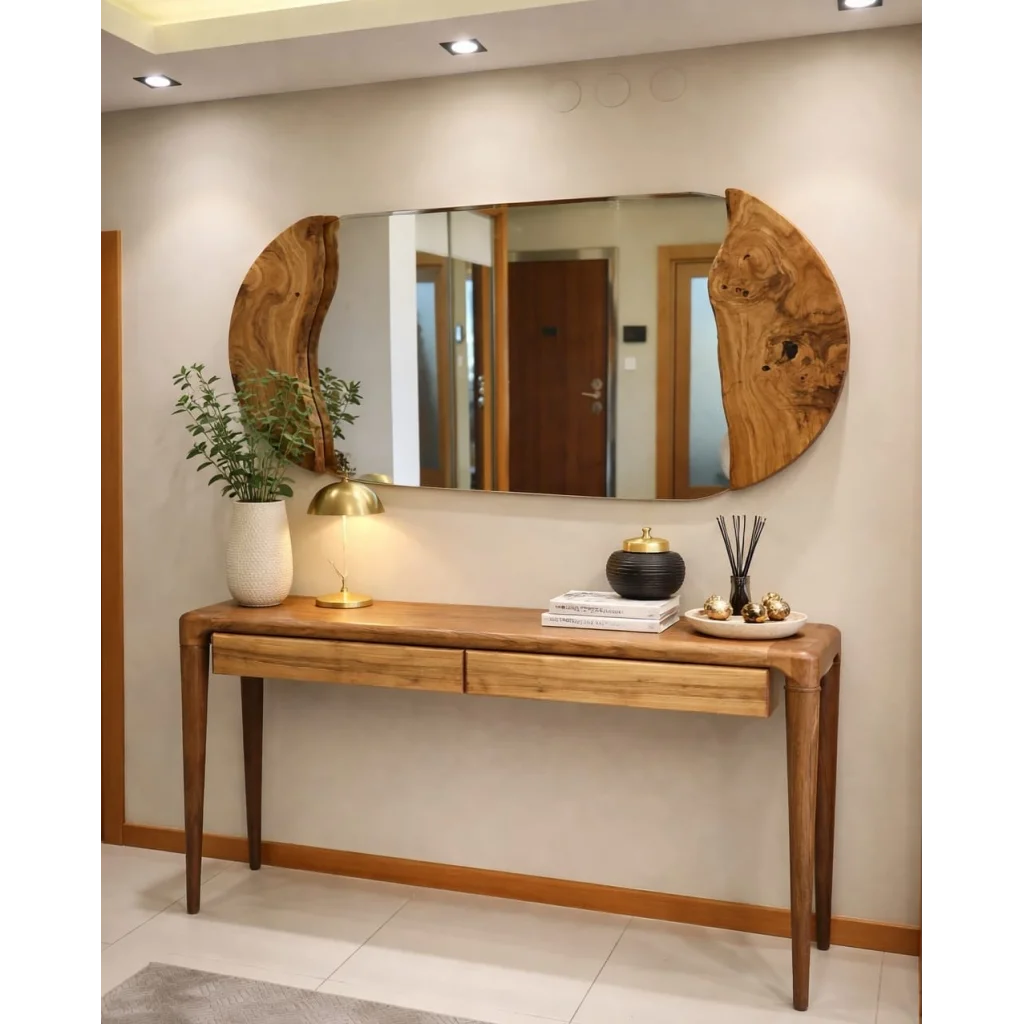 Doğanın akışından ilham alır Luna Dalga Ayna, kenarlarındaki masif ahşap dalga formu ile mekana hareket ve karekter kazandırır. Oval formu sayesinde hem yumuşak hem güçlü bir duruş sergiler. Epoksi ve ahşabın dengeli birlikteliği, modern yaşam alanlarına tasarım dokunuşu katar. Modern ve doğal çizgiyi birleştirir ve duvarınıza iz bırakan bir imza gibidir.