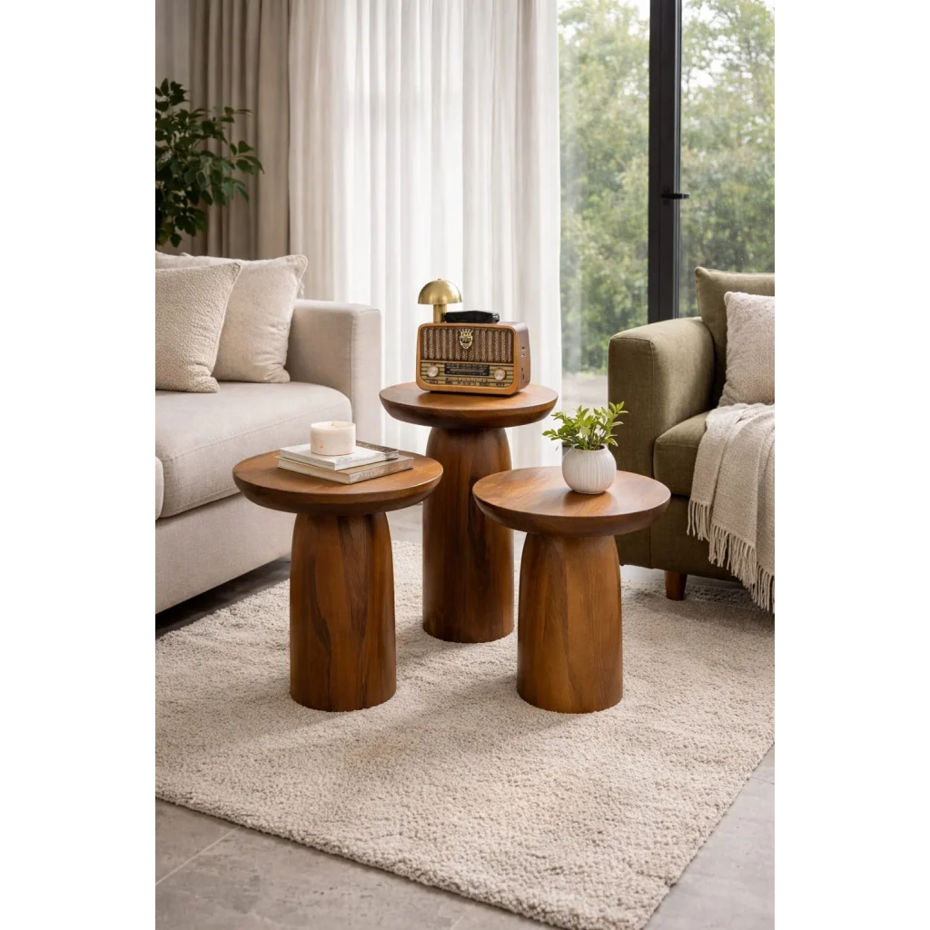 • Her bir parça ağacın kendi damar yapısını taşır; bu da her sehpayı eşsiz kılar.
