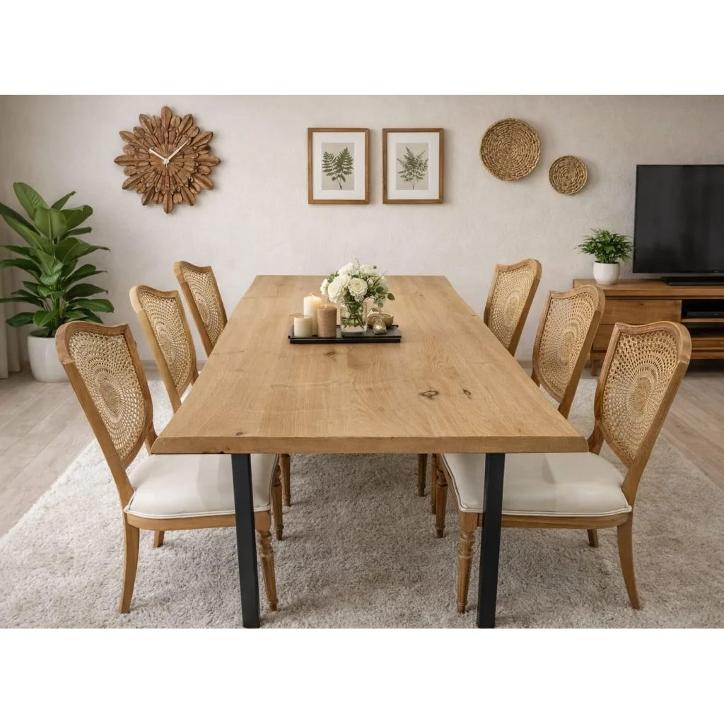 ROZET SANDALYE VE 220x100CM MASİF KESTANE MASA TAKIMI